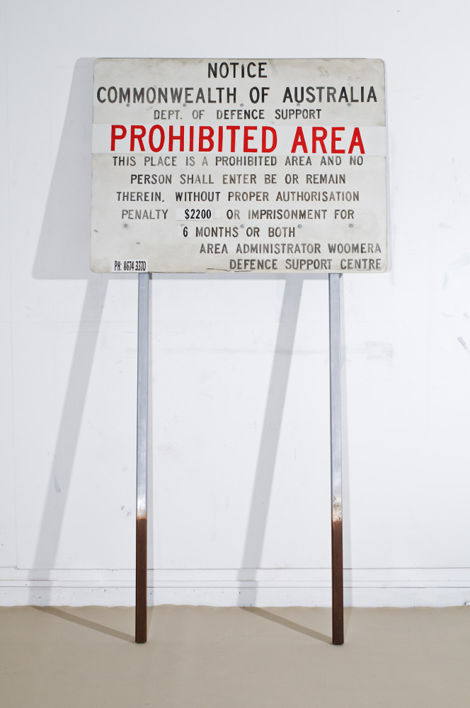 image: Adam Norton, Prohibited Area, 2010, acrylic on board, wooden poles and bolts, 240 x 122 x 7 cm